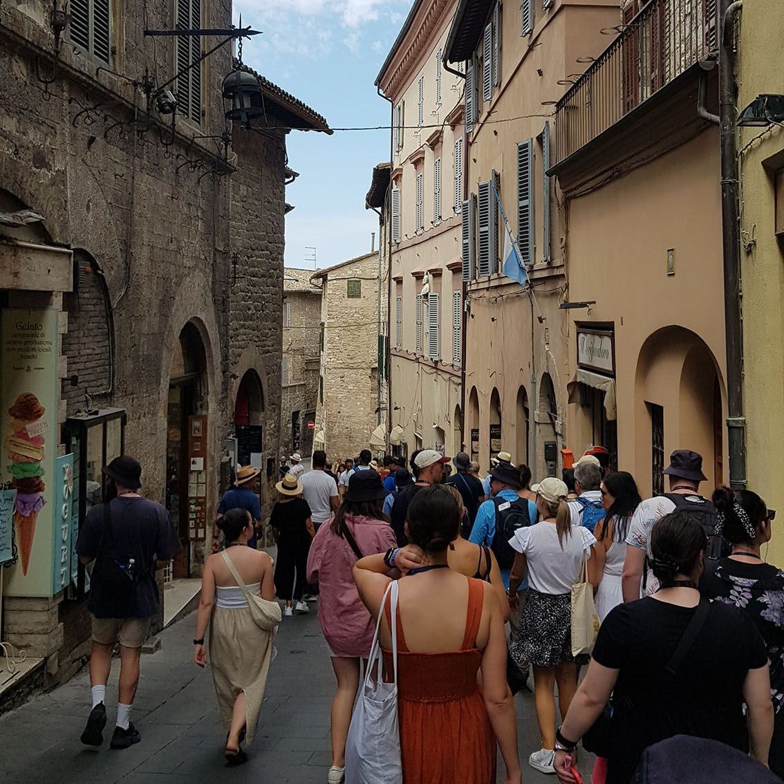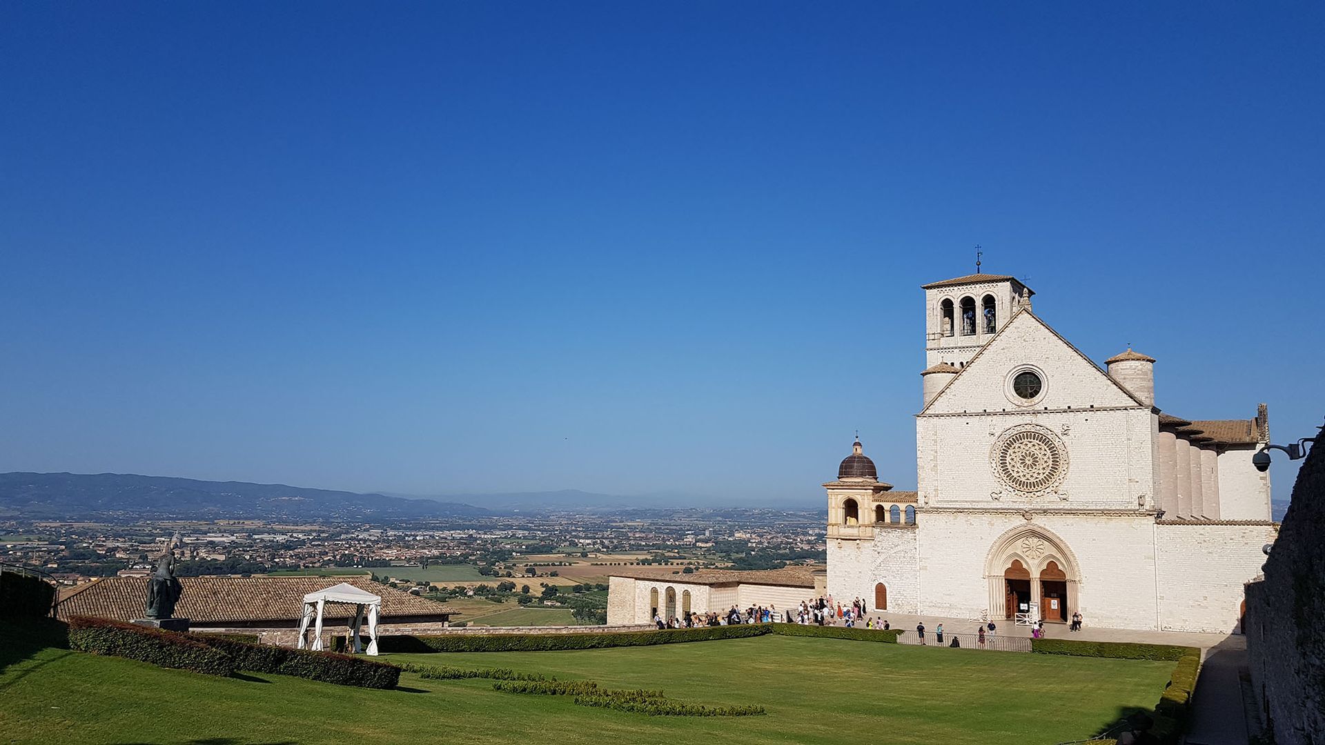 Pictured: Basilica of St Francis of Assisi, and emerging leaders exploring the streets of Assisi