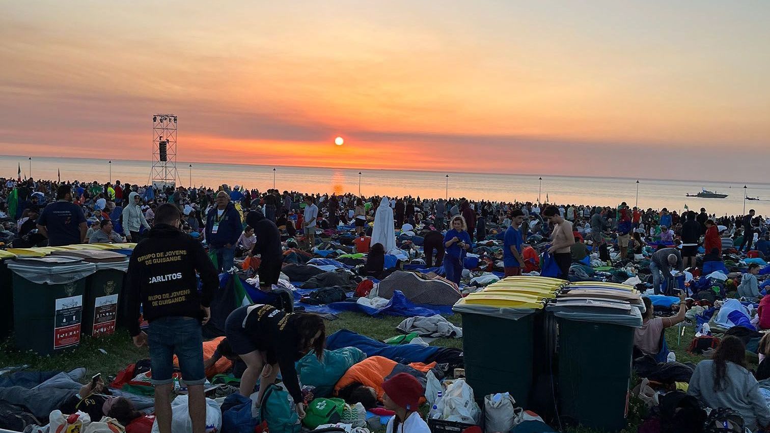 Pictured: Sunrise at the final WYD mass in Lisbon