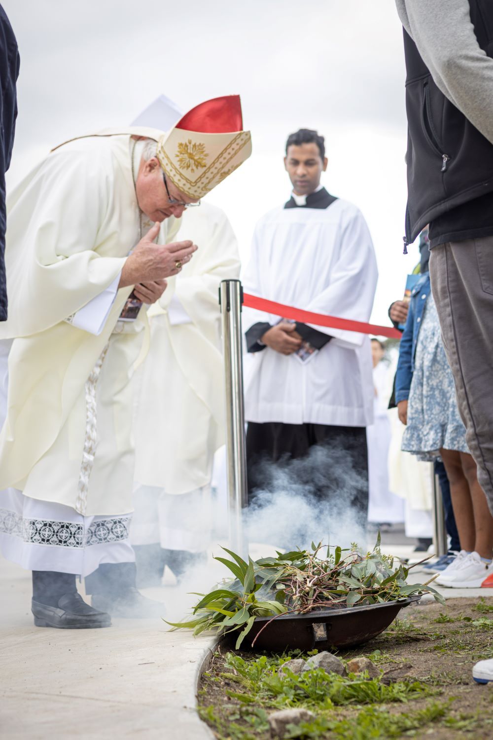 The dedication and blessing ceremony for the new Church building was celebrated with parishioners, local Bunurong Elders, founding Parish Priest Fr Denis O’Bryan, Bishop of Sale Gregory Bennet and Archbishop of Adelaide Patrick O’Regan (former Bishop of Sale). The proceedings not only marked the beginning of a new chapter for the parish community but also a sign of new life and growth for the Diocese of Sale who welcomed the new Church opening – one of the few of its kind in 40 years.