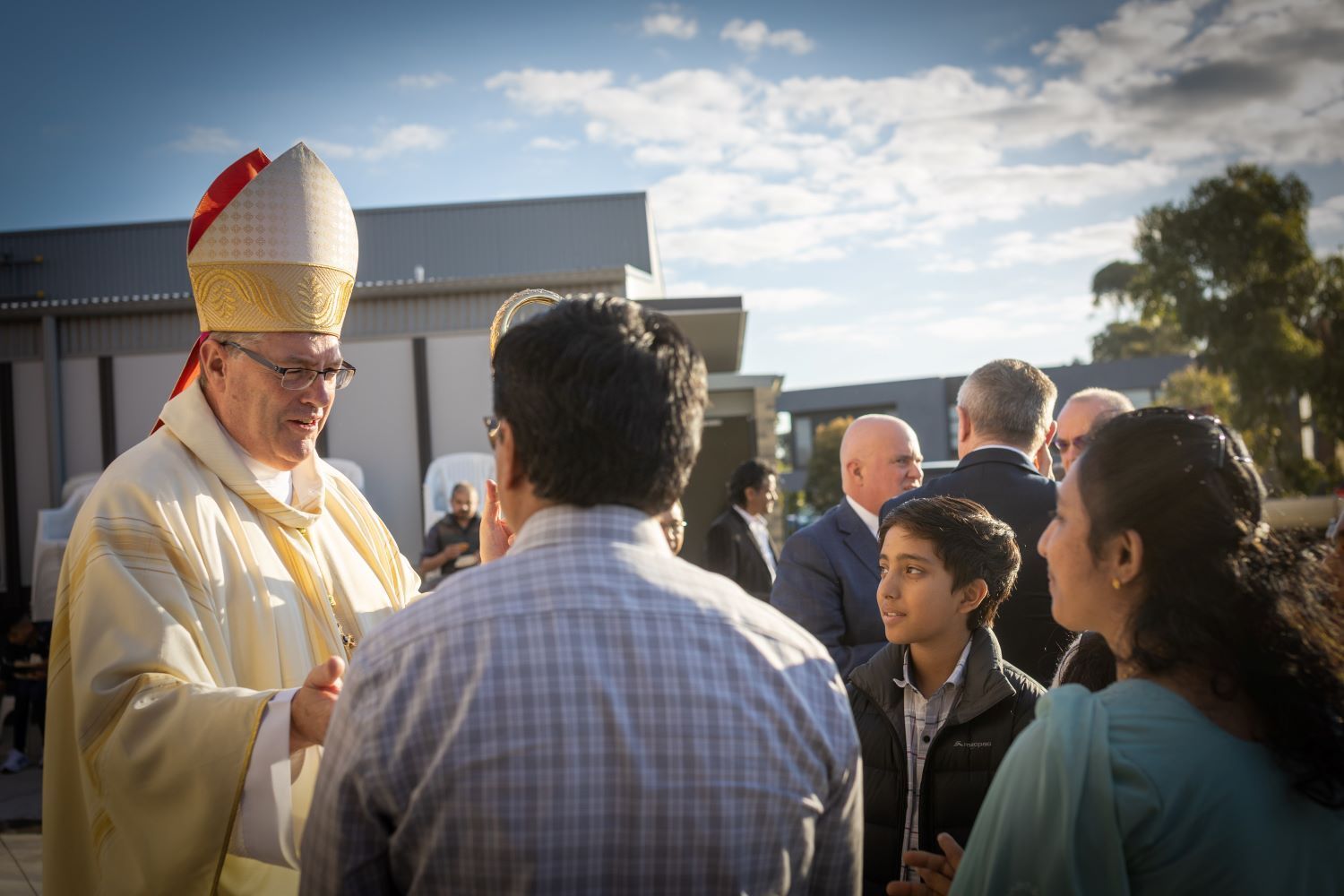 Bishop of Sale Gregory Bennet greeting Parishioners after Mass.
