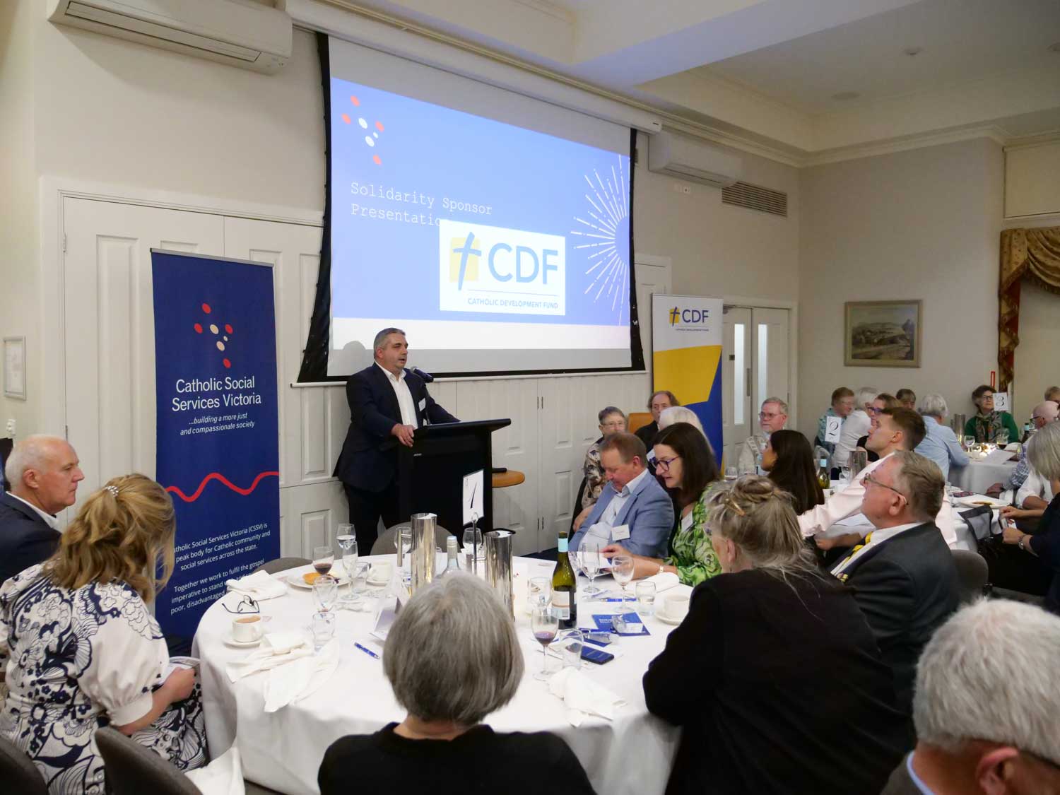 In November, CDF was proud to sponsor the Catholic Social Services Victoria (CSSV) Annual Dinner. The Dinner brings together CSSV’s 40 members, and affiliated organisations within Victoria, along with staff, supporters and community members to celebrate and acknowledge the efforts and activity over the past year. The event featured a panel discussion focusing on ‘Mental Health as Chameleon’, with guest speakers Marcelle Mogg, Chief Executive of Mental Health Victoria and Dr Mark Furlong, Thinker-in-residence at the Bouverie Centre (LaTrobe University).